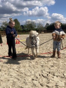 Gezellig borstelen, knuffelen, Nielsje inkleuren, wandelen en vlechtjes maken bij de pony’s?